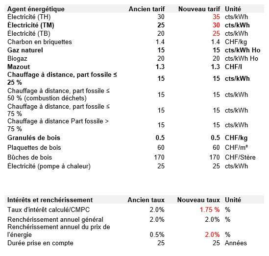 Les tarifs de l'énergie enregistrés par défaut dans l'outil CECB seront adaptés aux conditions actuelles avec la première révision de l’outil CECB en 2024 :