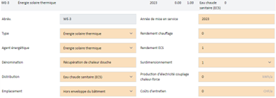 Important : pour la traçabilité, il est important de justifier la part de récupération de chaleur. Un calcul ou une estimation correspondante doit être effectué par l'expert·e CECB si rien n'est disponible. Donc dans cet exemple pour le taux de couverture de 20 %, respectivement les 501 kWh de WE-3.