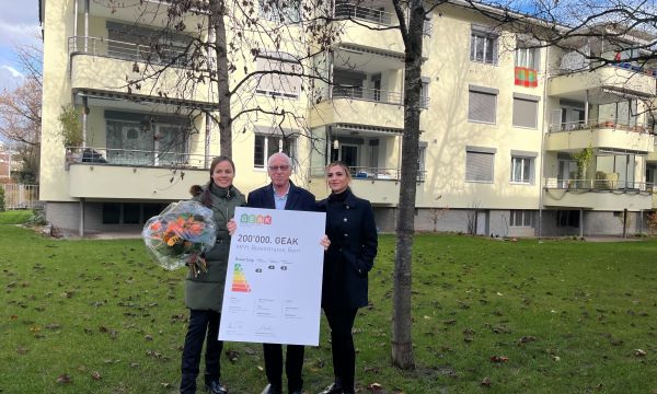 La Suisse compte désormais 200 000 bâtiments classifiés avec CECB, ce qui représente un grand succès pour l'association du même nom. Depuis 16 ans, celle-ci promeut son outil d'analyse énergétique et de conseil. Récemment, le président de l’association CECB et conseiller d'État lucernois, Fabian Peter, son directeur général, Andreas Meyer Primavesi, et Ismael Basler de ubl architekten GmbH, expert CECB, ont remis personnellement le 200 000e CECB au maître d'ouvrage, la coopérative d'habitation Pro Domo Bern.